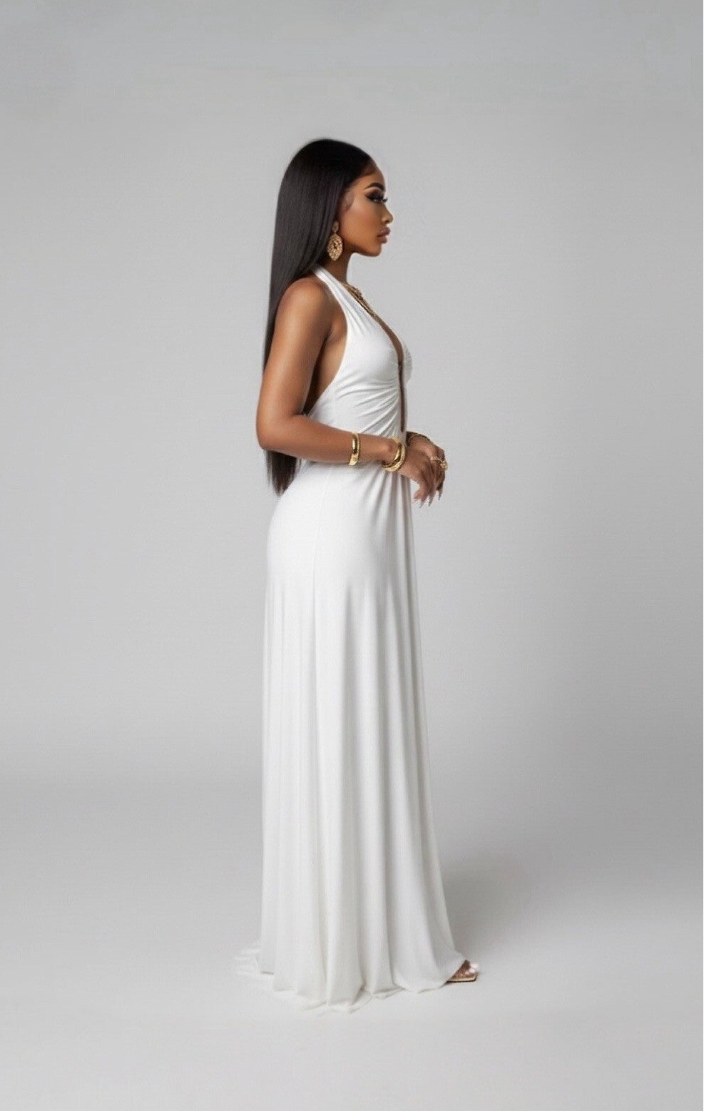Introducing ARIA, a breathtaking halter-neck maxi dress for women, featuring a daring deep plunge and a flowing, elegant silhouette. Soft, feminine, and effortlessly striking — perfect for special occasions, formal events, and unforgettable nights out.